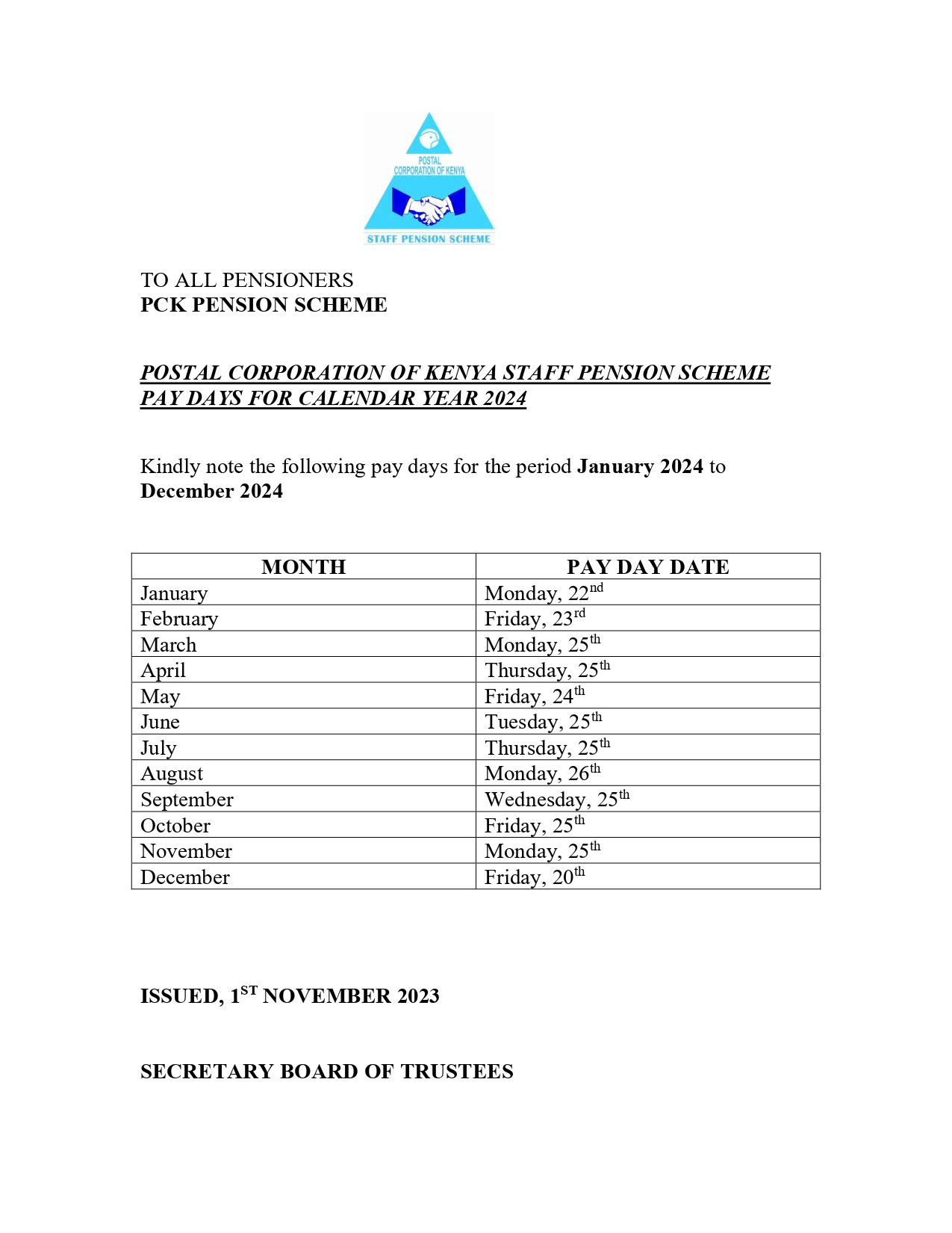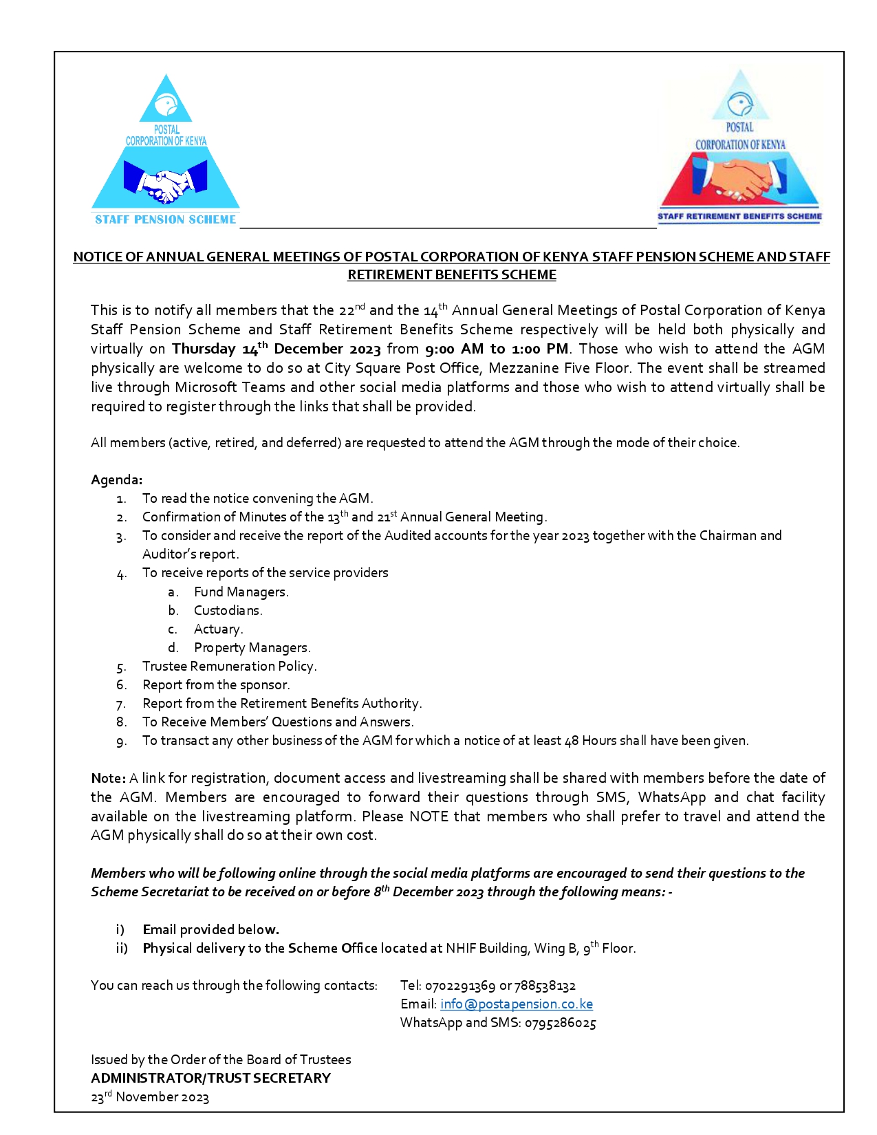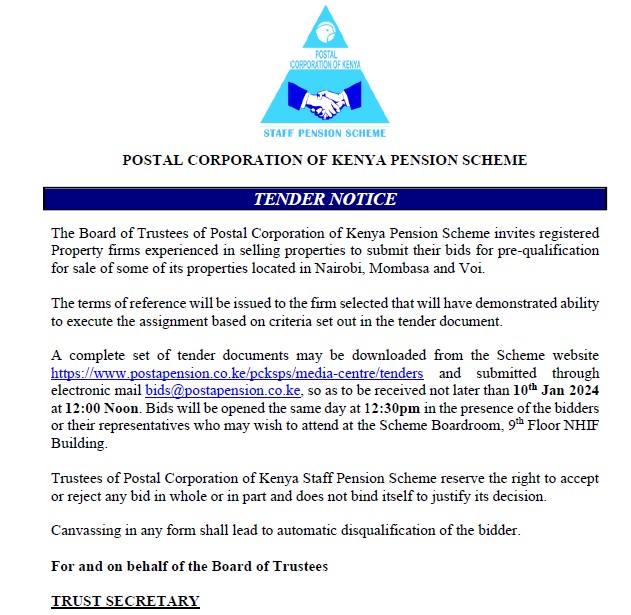 POSTAL CORPORATION OF KENYA STAFF PENSION SCHEME CANDIDATES WHO QUALIFIED TO CONTEST FOR THE POSITION OF TRUSTEE